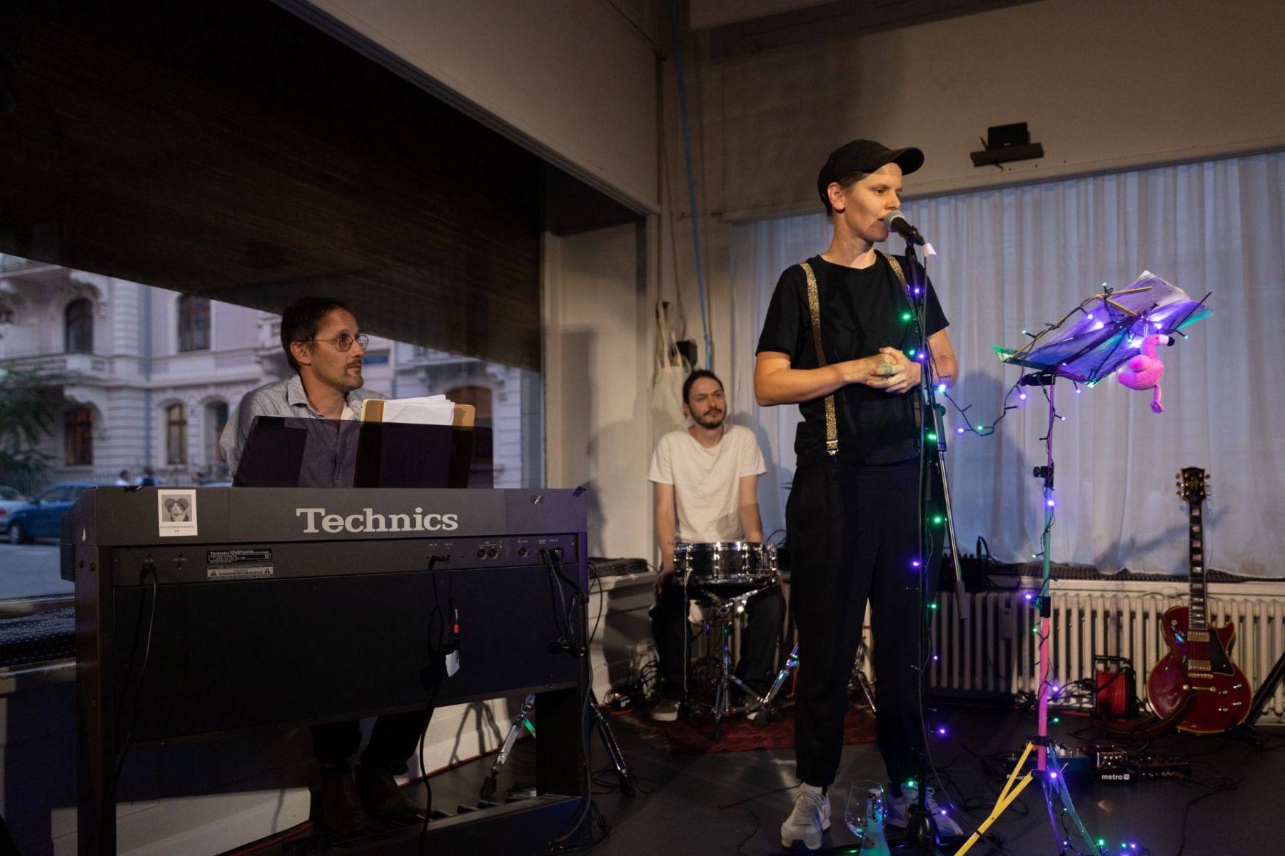 Die Spoken-Word-Band mit der Autorin Daniela Dill und den Musikern Christoph Wüthrich und Florian Siess läutet die neue Sofa-Saison: Dill & Kraut spielt mit allen Mitteln der Lebendigkeit gegen den Glanz an: lustvoll, locker und hin und wieder in rasantem Tempo. Eine Art bunter Jazz-Punk-Passion-Sound aus Schepperorgel, E-Gitarre, Plastikflöte untermalt, trägt und stachelt die rhythmisierten Sprechtexte an.